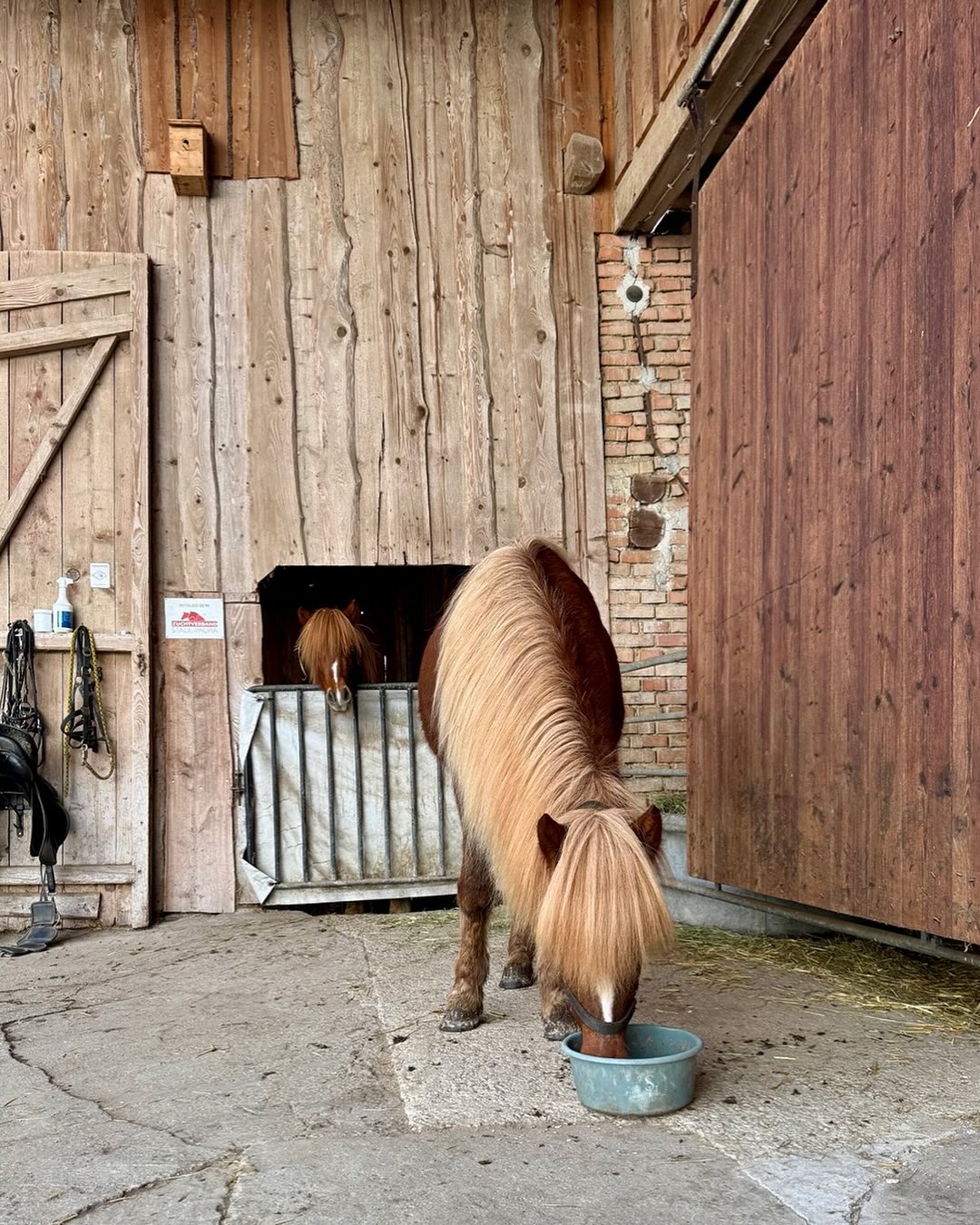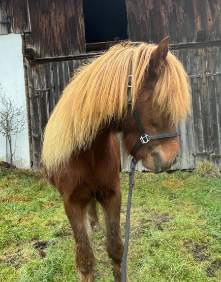 Derzeit wird Ástin nach ihrer Fohlenpause schonend angeritten. Freilaufend präsentiert sie alle Gänge, bevorzugt Trab.