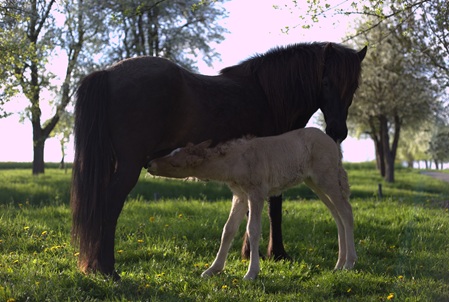 Kräftiges Fünfgangfohlen mit Schwerpunkt auf gut balanciertem, taktsicherem Naturtölt, etwas gelaufenen Grundgangarten und gut bemuskeltem Exterieur.